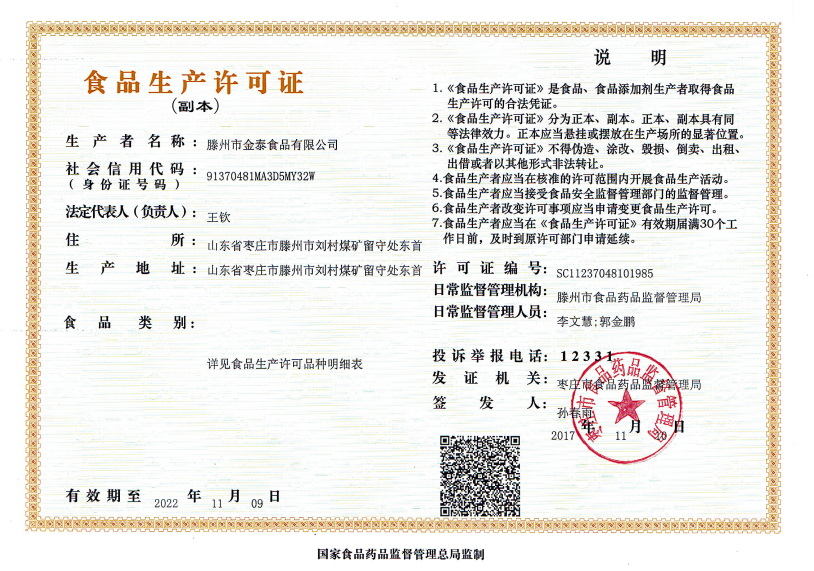滕州市金泰食品股份有限公司是滕州一家大型民營企業(yè),成立于2017年1月,法人石圣,企業(yè)坐落于山東省滕州市劉村煤礦院內(nèi),占地30畝,個人獨資企業(yè),現(xiàn)有員工50人,注冊資金800萬元。年生產(chǎn)能力10萬噸,產(chǎn)值2.4億元。
